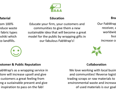 We believe that this fabric wrapping tool can spread all over the world. FabWrap's mission is to be as sustainable as possible. We aim for zero waste in the environment as our materials are 100 % upcycled materials.